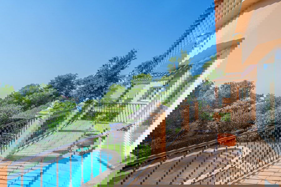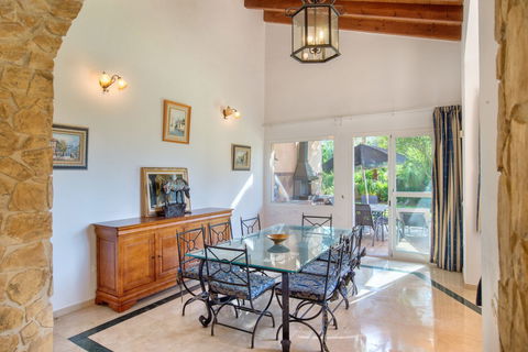 It has a built area of 385 m2 and is located in an oasis of peace and tranquility with a swimming pool, barbecue area, garden with mature trees and partial sea views.