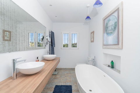 The villa has been designed to offer a unique experience in every corner. Its open-plan layout allows for a seamless connection between the living room, dining area, and kitchen, creating a spacious and welcoming atmosphere. Natural light floods every room, highlighting the elegant design details. The kitchen, with a central island and modern finishes, is the perfect gathering spot for informal meetings or family dinners.