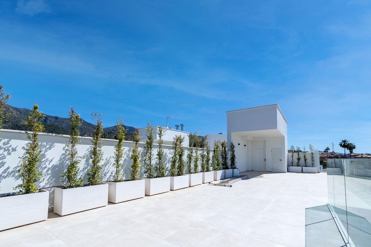 Imagine your life in Marbella, enjoying more than 320 days of sun a year.. The Ground Floor offers a spacious living-dining-kitchen open and elegant design, while the First Floor houses three bedrooms with en-suite bathrooms and private terraces. And to culminate, a solarium on the Terrace Floor with an indoor area and a toilet, all accessible by lift. In addition, its two parking spaces in the basement floor with direct access to the villa and independent elevator ensure maximum comfort.
