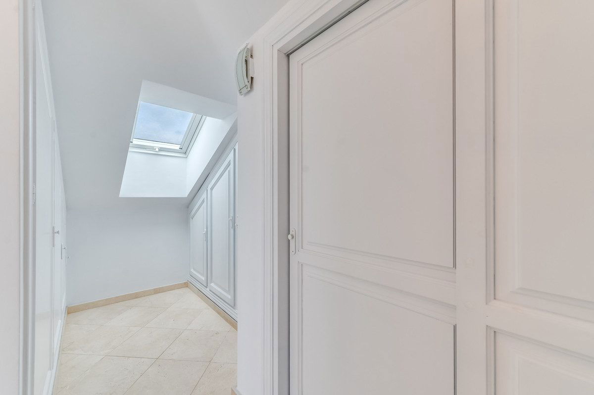 On a higher level, the stunning master suite boasts a generous walk-in closet, an en-suite bathroom, and access to a private terrace with unparalleled sea views.