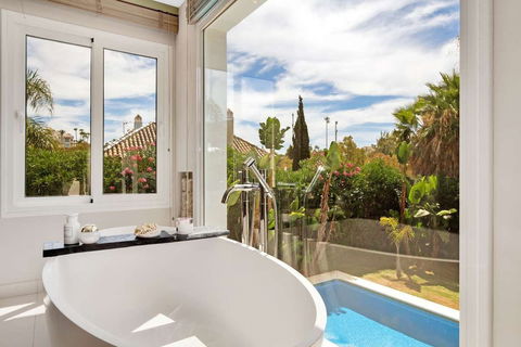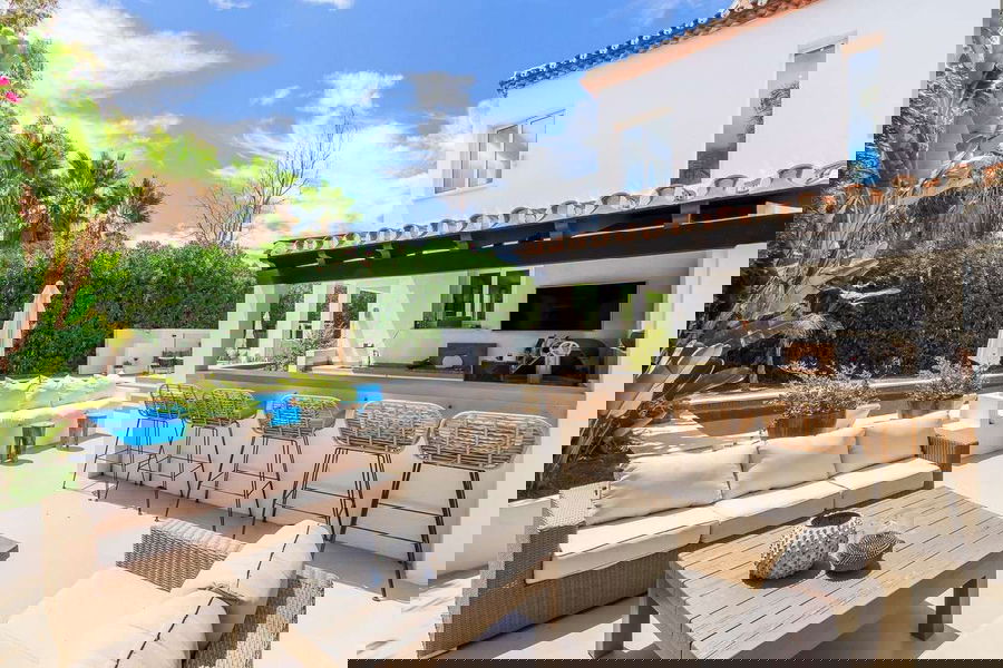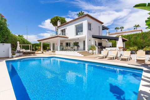 This elegant 4 bedroom private villa is located in the gated urbanisation of Marbella Country Club in Nueva Andalucia. It offers a blend of traditional Andalusian and modern style due to renovating over the past 10 years. Boasting a 11 meter private pool, fully equipped outdoor kitchen, independent wine cellar, automated toilets, and zoned floor heating and air conditioning, this property ticks all the boxes for a family looking for their new home.