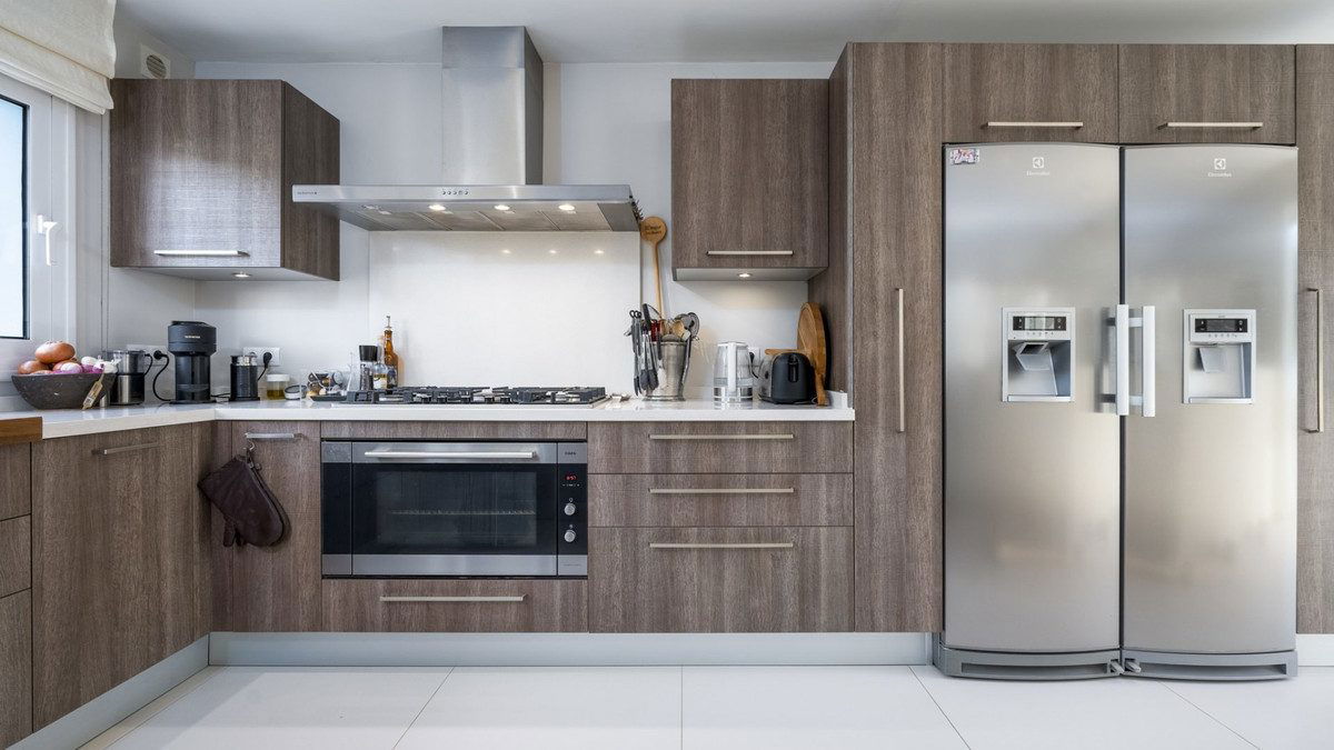 On the main level, this property has a big size semi-open plan living and dining area including a double-height ceiling, modern wood-burning stove, one ensuite bedroom, a fully fitted Italian kitchen, and a guest toilet. Glass doors connect the indoor spaces to the outdoor dining terrace and pool lounge where you find multiple chill-out areas.