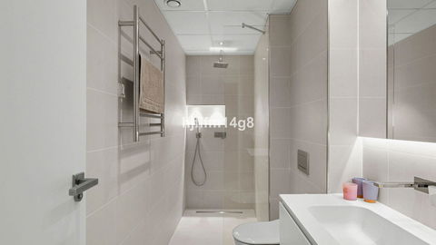 The villa's five bedrooms are complemented by stylish modern bathrooms. Each bedroom has its own air conditioning unit, and the master suite boasts elegant wooden flooring and an en-suite bathroom with a luxurious bathtub. Three bedrooms are located on the upper floor, while the lower level offers two additional bedrooms and a convenient laundry room.