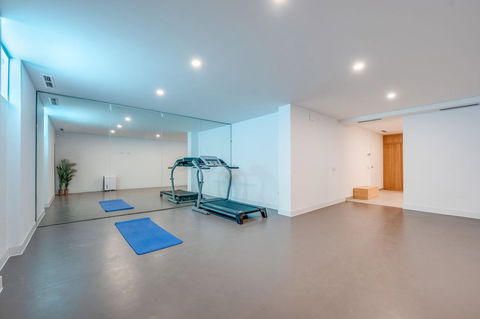 The basement transforms into your own private wellness and entertainment sanctuary — complete with a home cinema, spacious gym with mirrored walls, sauna, and chill-out zones. A section of the basement was originally conceived as a showcase garage, and the property includes structural preparation for a car lift, allowing the space to be repurposed for automotive display or luxury vehicle storage. Currently, it's enjoyed as a children's recreation zone — perfect for families.