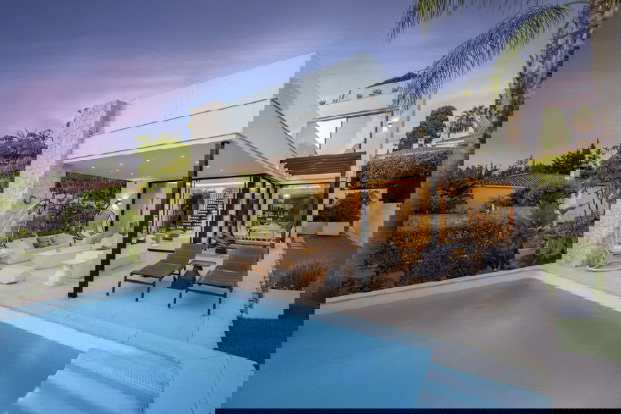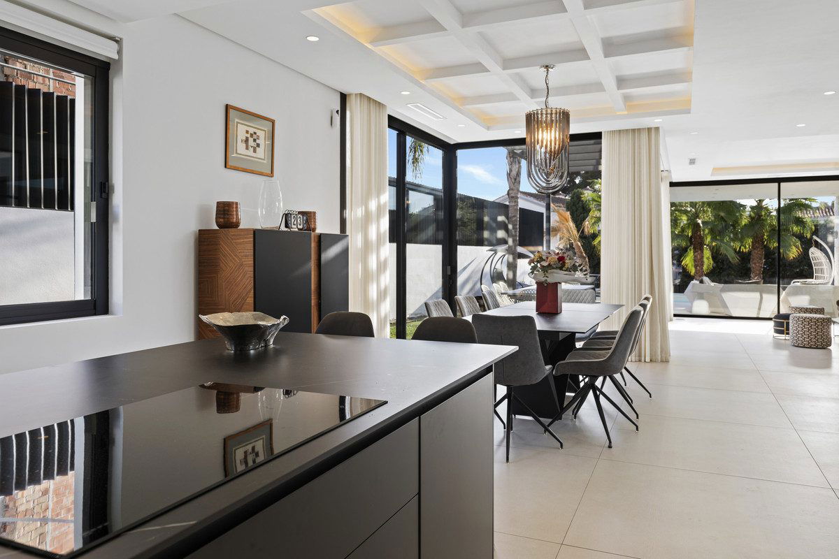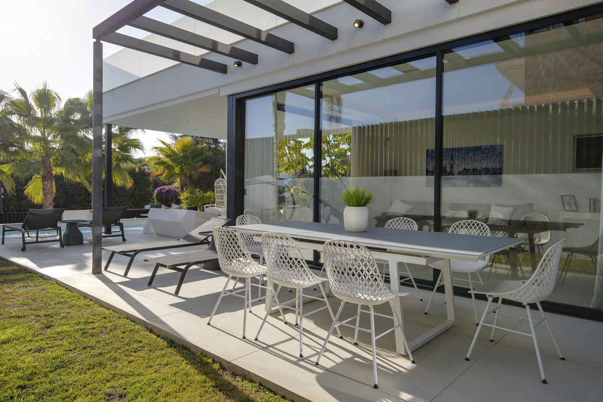 Experience the perfect blend of contemporary design and beachside living in this stunning modern villa in San Pedro de Alcántara. Bathed in natural light, the home features sleek, open-plan living with a spacious kitchen and dining area, an office, and a master bedroom suite with a private terrace overlooking the pool and garden.