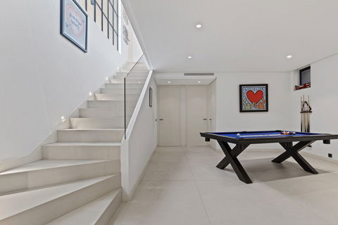 The villa's detailed ceilings and stylish finishes create a sense of understated elegance throughout. Outdoors, a private pool and garden provide ample space for entertaining, dining, or simply relaxing under the sun. With two floors of living space, plus a finished cozy basement complete with a pool table, lounge area, and TV, there is plenty of room for family, guests, or leisure.