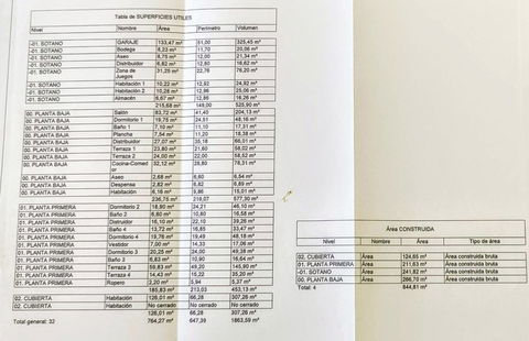 The naturally lit basement offers a games room, two additional bedrooms (for beds), a family bathroom and a large garage that can accommodate 3-4 cars. There are also storage areas and engine rooms.