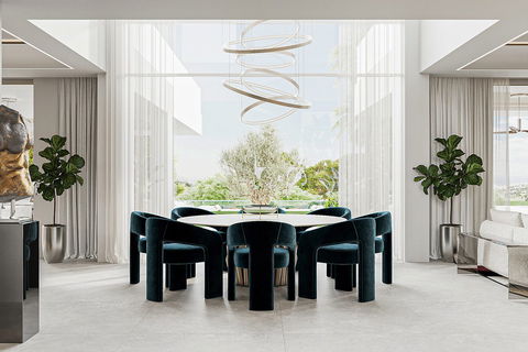 A majestic entrance with a water feature welcomes you into this wonderful property. The large windows bring in abundant natural light throughout the villa and create a seamless connection between the indoors and the surrounding nature.