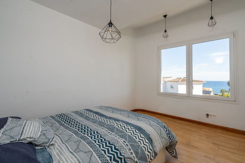 There are three good-sized bedrooms and two bathrooms, along with an open living space that connects naturally to the outdoor areas. Solar panels and a garage with an electric charger add practical, eco-friendly benefits. There is also the possibility of adding a rooftop solarium, which would take full advantage of the views out to the Mediterranean.
