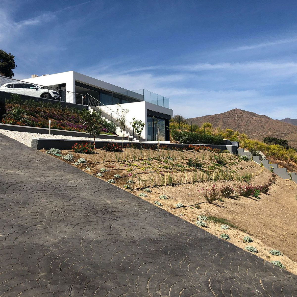 Outdoor living is equally impressive, with a private garden and jacuzzy with a portable pool but there are 2 projects to build a proper 15m x 4m swimming pool, and a terrace area spanning 41m² that offers panoramic views of the surrounding mountains and countryside. The property also includes a covered terrace, a ground floor patio, and an uncovered terrace, providing multiple spaces for relaxation and entertainment. A private garage adds to the convenience, while the presence of a barbeque and jacuzzi further elevates the outdoor experience. The villa's location is ideal, being close to amenities such as shops, schools, and playgrounds, as well as proximity to the beach, golf courses, and the town centre.