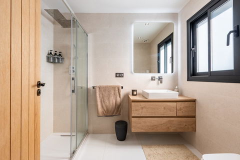 On this level, you have the Master bedroom, featuring a spacious en-suite bathroom and a large terrace facing the mountains and the sunset.