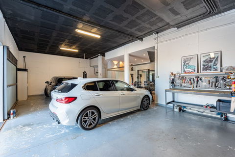 In front of the car, you can see the gym through glass walls.