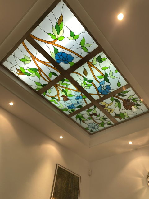 Entrance porch leading to the reception lobby with a lovely stained glass light well.