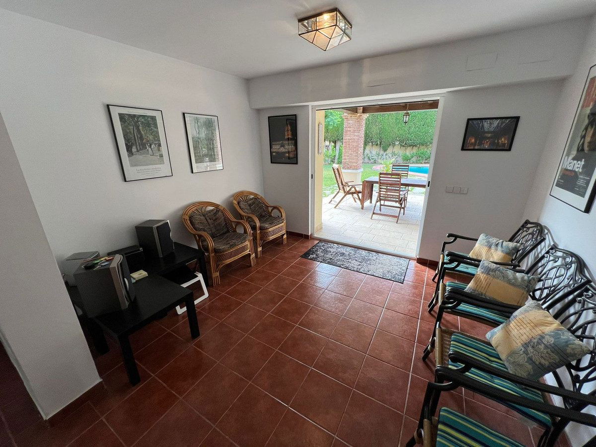There is direct access to a covered terrace, garden and pool.
