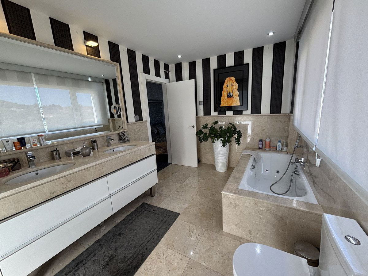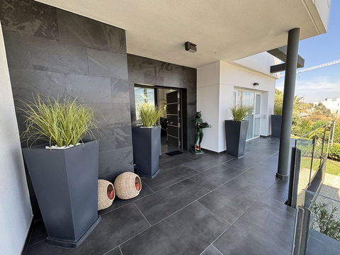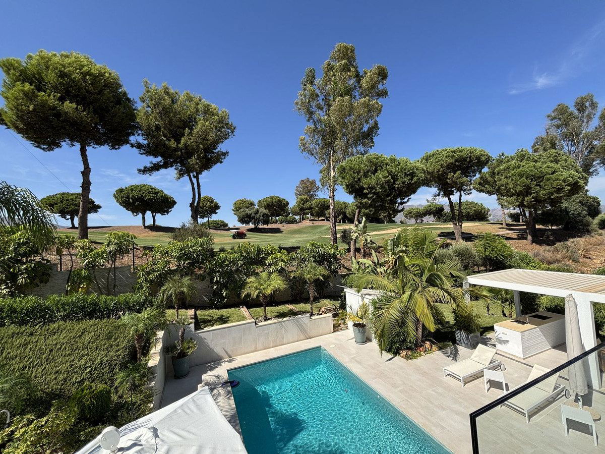This stylish modern villa is located frontline to the golf course in the sought-after La Cala Golf Resort. With clean lines, large windows, and a sleek design, the property offers bright and open living spaces with stunning golf and mountain views and a roof terrace.