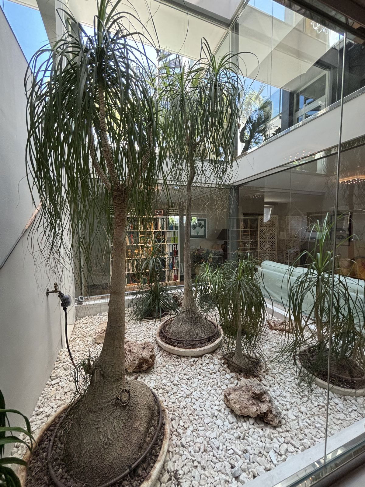The villa features 5 spacious bedrooms, including a separate guest bedroom in the basement with its own private entrance — ideal for visitors or staff. A standout feature is the glass wall inside the home, showcasing an indoor garden that brings a touch of nature indoors.