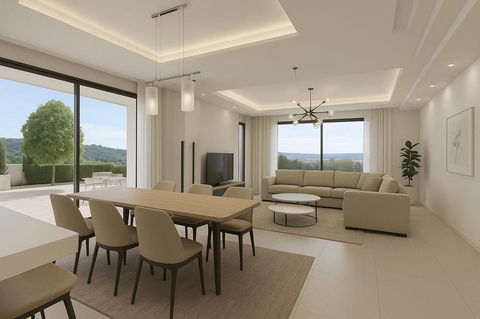 Stunning modern villa offering breathtaking sea, mountain, and urban views. Features include a private lift, garage, versatile lower level for gym, cinema, or extra bedrooms, three en-suite bedrooms with terraces, open-plan living and dining with integrated kitchen, guest toilet, covered porch, private pool, jacuzzi, and rooftop solarium.