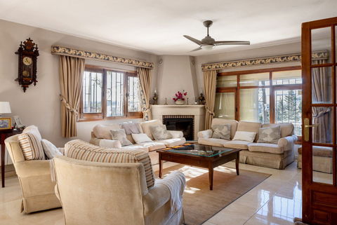 The main house comprises 4 bedrooms, all ensuite, with the primary bedroom located on the upper floor, featuring a spacious terrace overlooking the Polo fields, maximizing the stunning views. Outside, a fantastic covered BBQ area accompanies the large swimming pool.