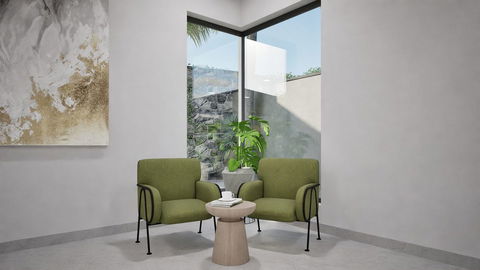Ground Floor: True open concept. Living room and kitchen flow directly onto the terrace and infinity pool. Views of nature and the sea, bringing the outside in.
