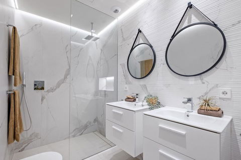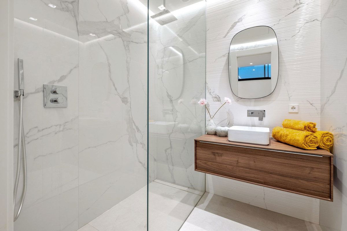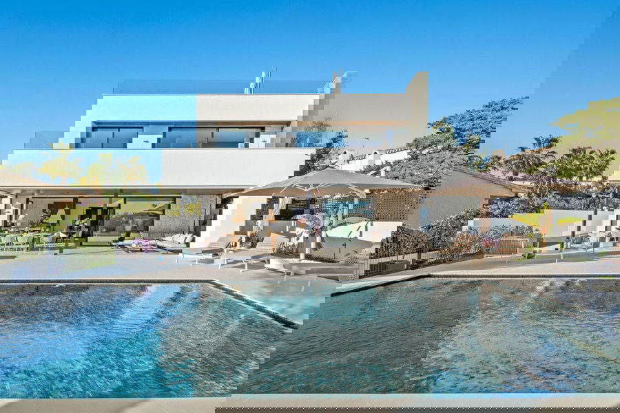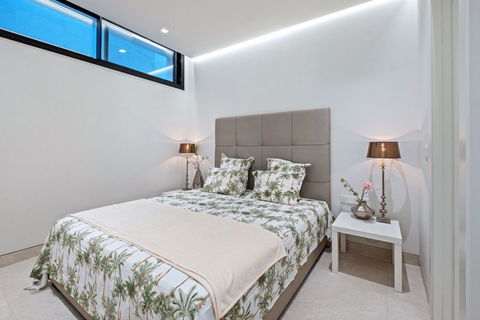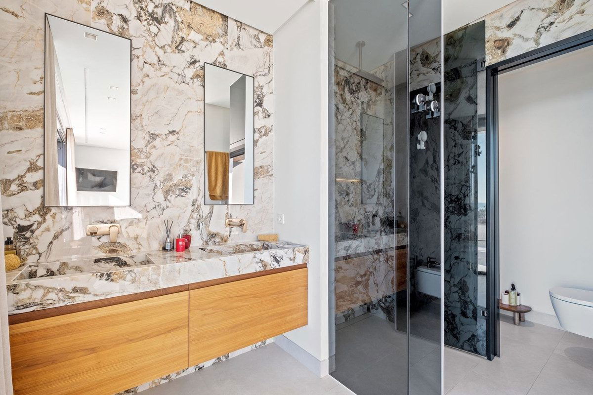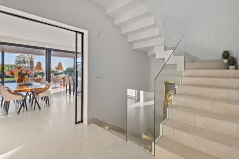 Boasting 4 spacious bedrooms and 5.5 bathrooms and fitness and relax room, this residence has been designed to maximize comfort and elegance. The upper floor features the master suite, with an open-concept bathroom and direct access to an impressive private solarium with a Jacuzzi, perfect for enjoying Mediterranean sunsets.