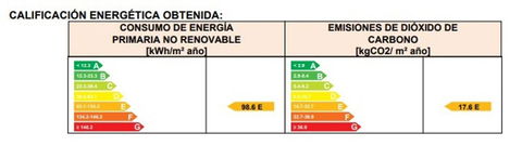 Energy certificate rating: E, consumption 98.6 kWh and emissions 17.6 kWh.