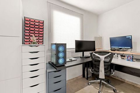 There is an office and two guest bedrooms, currently in use as another office and a store room, as well as a guest bathroom and a separate WC.