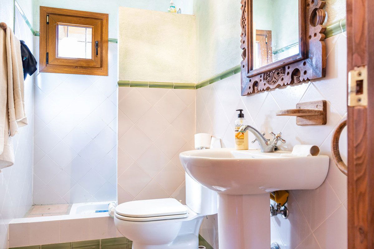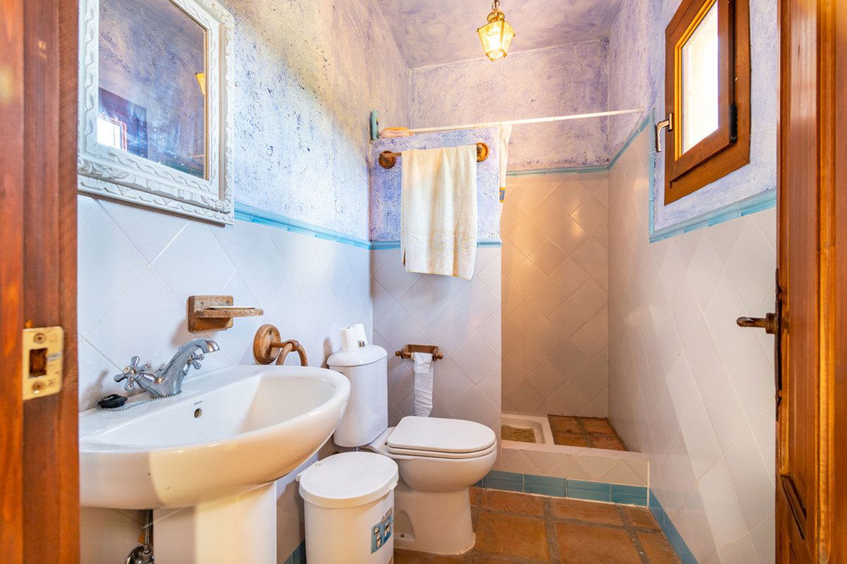 A large finca in an elevated position with sea and panoramic mountain views. The property is totally fenced and gated with landscaped gardens, a driveway and turning circle, open parking area and swimming pool. The house has a large covered front and side porch with a lower storeroom and a bodega. The ground floor has a rustic farmhouse style kitchen, huge open plan living room/dining room and a shower room and toilet. Upstairs there are 3 bedrooms, 2 bathrooms and a master bedroom suite with ensuite bathroom and huge panoramic terrace.