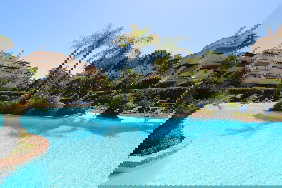 Discover this very spacious apartment in Capanes del Golf with resort-style amenities, tropical gardens, and easy access to Benahavis village, Marbella, Puerto Banús, and local services.