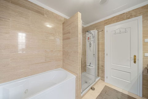 ¡Discover your new home in this spectacular two bedroom apartment, ideal for both vacation and permanent residence! With an interior built area of 127.50 m 2, a porch of 11.50 m2 and a garden of 95 m2, this fully furnished apartment stands out for its excellent distribution, which offers spaciousness and luminosity in every corner. The two large bedrooms have fitted wardrobes, and the two full bathrooms, one with shower and the other with whirlpool tub, provide the comfort you deserve.