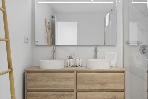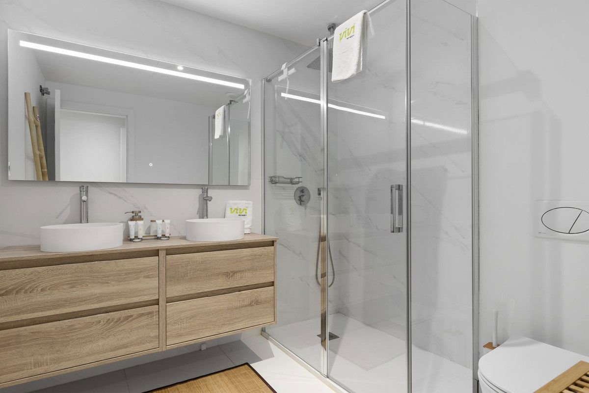 The apartment boasts a fully fitted, open-plan kitchen equipped with high-quality appliances, perfect for culinary enthusiasts. The living area is designed for relaxation, featuring comfortable furnishings, a television, and WiFi connectivity. The property is in excellent condition, with optional furniture available to suit individual tastes. Air conditioning and aerothermal technology further enhance the comfort of this home.