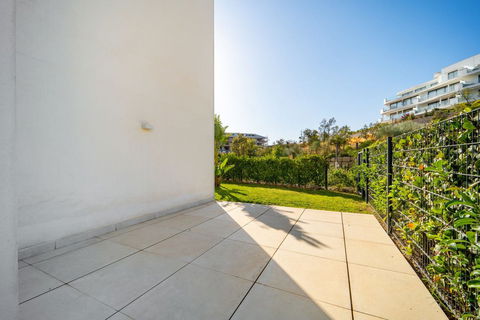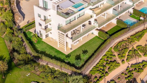 Stunning west facing corner garden apartment, with 3 bedrooms, and 2 bathrooms, spacious living-dining room, open plan kitchen fully furnished and equipped with electricial appliances from Bosch, including MIELE fridge/freezer, laundry area with washing machine/dryer, large wrap around terrace of 78m2 with access from living area and main bedroom. There is also a backside terrace of 34m2 with access from the secondary bedrooms. Spacious private garden area of 258m2. Main bedroom with ensuite bathroom and walk-in wardrobe. Air conditioning hot and cold, built-in wardrobes in secondary bedrooms and hall entrance, video intercom, domotic system, pre-installation alarm system, water purification system in kitchen, under floor heating throughout all the apartment including bathrooms. Includes two parking spaces (one parking with electric car charger) and one storage room.