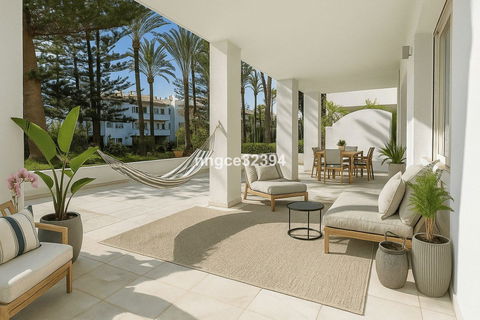 Positioned in the most privileged location within the complex, just 30 meters from the San Pedro beachfront promenade, this rare ground-floor gem offers a private oasis surrounded by lush Mediterranean gardens and the sound of the sea.