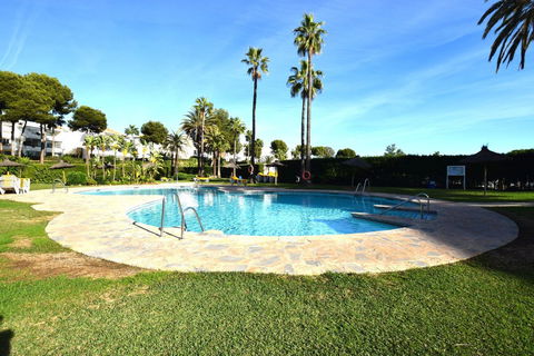 Southwest facing bright and airy 1 bedroom, 1 bathroom garden apartment for sale in the well established and secure gated community of Miraflores Rancho A. Less than 700 metres to the beach and the well known Restaurante Antonio chiringuito, this could be your perfect apartment for summer holidays and relaxing winters. Nestled between the vibrant La Cala de Mijas and Riviera del Sol this apartment is a great base for exploring all of Mijas Costa. On entering the apartment the bedroom is on your left hand side, followed by the bathroom with shower above and then you have the open plan kitchen and dining area with a couple of steps down to the bright and spacious lounge. From the lounge you have direct access to the covered and enclosed terrace, from which you have direct access to the southwest facing communal garden area. The bedroom has patio doors to a smaller open terrace which also has direct access to the garden. The community swimming pool is a large figure of eight design and there is also a separate toddlers pool next to it. Both pools have grass surrounds with fixed parasols and community sun beds. Within this gated area there is a snack bar/cafe that is open seasonally, usually from the end of March to the end of October. There is communal off street parking by the entrance gate for easy access to your property. If you´re looking for your first purchase or a retirement bolt hole this could be the ideal apartment for you.