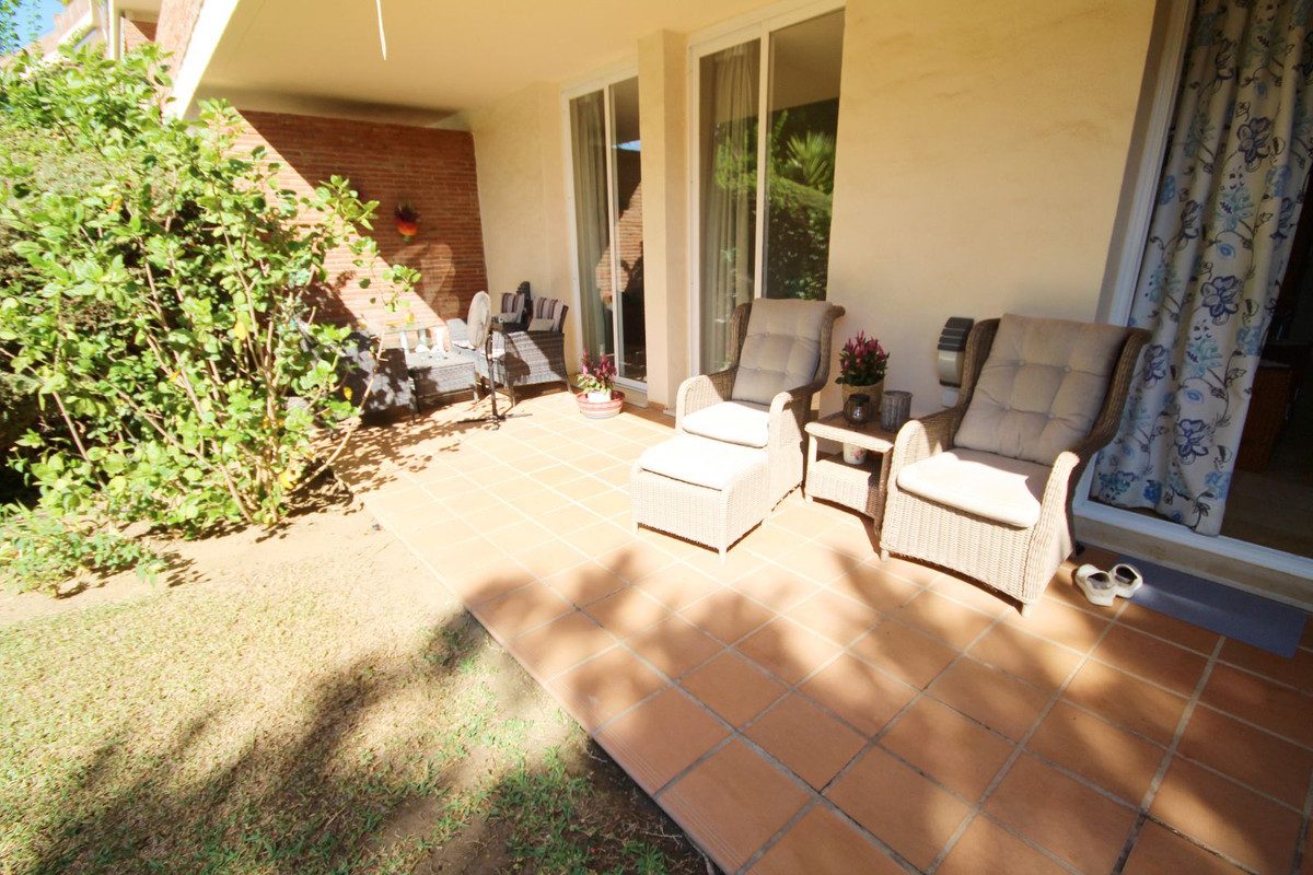 This peaceful complex has beautiful, very well maintained gardens which includes a water / pond feature. It also has a large pool with bar area, gymnasium and sauna. Situated next door to Miraflores golf club, it is a very desireable sought after complex.