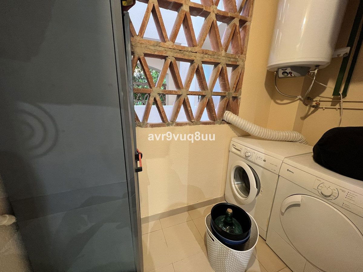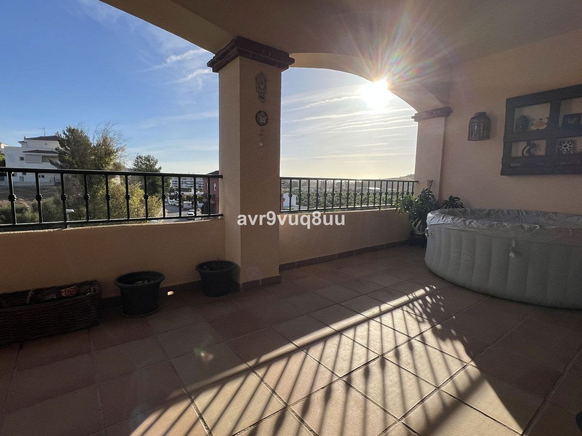 What a fantastic opportunity to snap up this gorgeous elevated ground floor apartment with superb open views from the large private terrace. Large lounge diner, separate fully fitted kitchen with generous utility room, 2 double bedrooms with built-in wardrobes, 1 en-suite family bathroom plus an additional guest shower room. There is an underwound garage space and a large storage room included. The community consists of only 16 properties, so is very quiet and feels very private and residential. The renowned La Cala Hills developments are some of the most sought after in Mijas and this property has everything you would expect in a luxury property