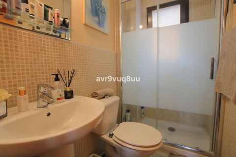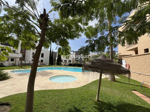 Just a stone´s throw from La Cala de Mijas and the beach! This elevated ground floor modern apartment is ready to use immediately, just bring your swimming gear and a towel. A bright open lounge diner, fully fitted kitchen and two double bedrooms with built-in wardrobes plus hot and cold air conditioning throughout. The main bedroom has a full en-suite bathroom and access to the one of the large partially covered terraces, the guest bedroom has the use of the additional shower room and access to the second large partially covered terrace which also has its own private bar. This property has the huge advantage of having a supermarket on the doorstep and still being only a short walk to the coastal town of La Cala de Mijas, the beach and public transport. Owners also have the use of the beautifully maintained communal swimming pool, an underground parking space, community CCTV, the 2 large terraces mean you can chase the sun or shade plus very reasonable running costs make this is a very desirable choice.