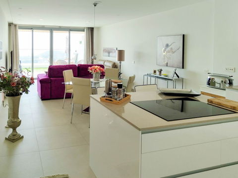 This first-class flat has two bedrooms with en-suite bathrooms, an open-plan kitchen/living room and an additional guest WC. It offers an exceptional living experience with a combination of luxury, comfort, and relaxation. The modern design and high-quality furnishings combine with the natural surroundings and first-class facilities, the right thing for a sophisticated lifestyle.
