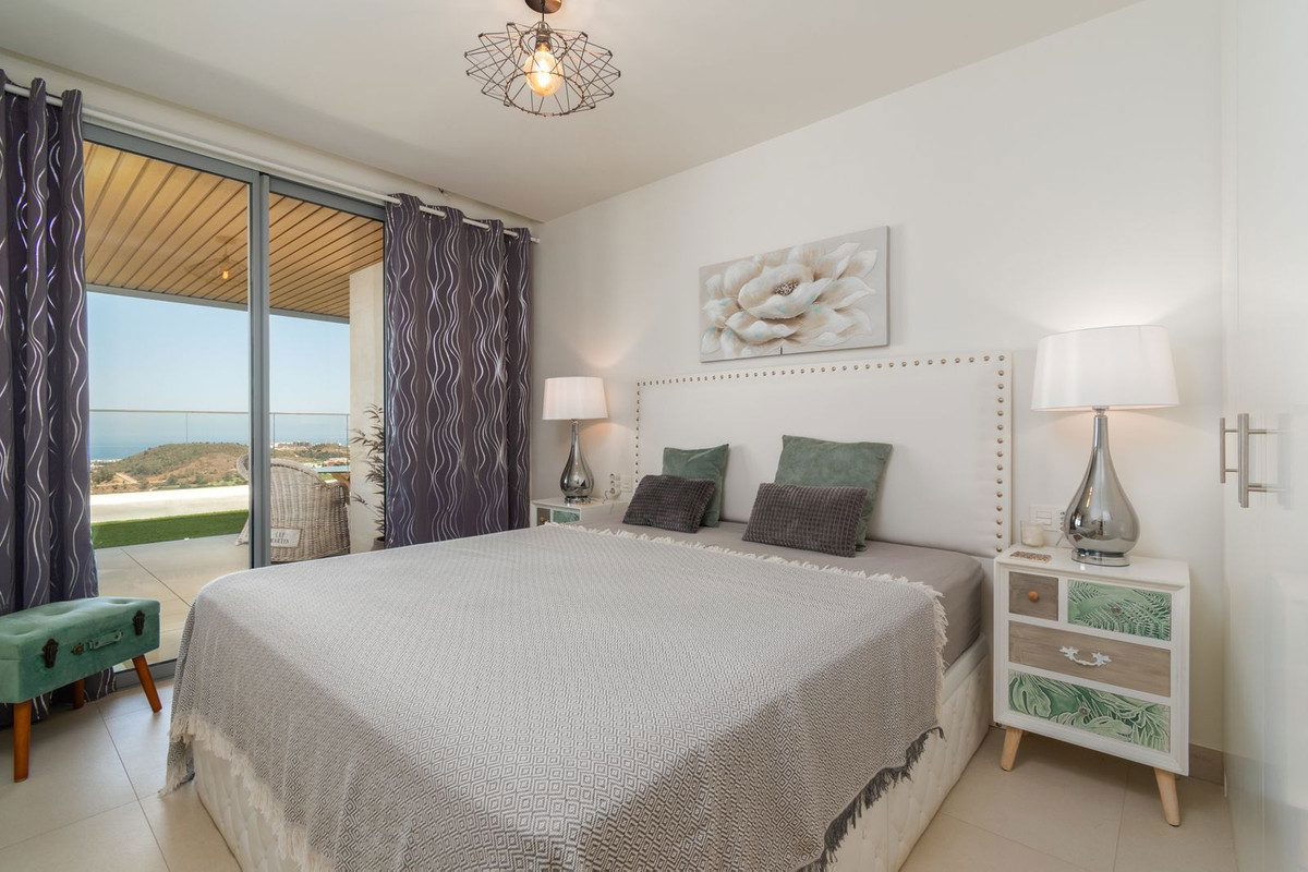 The two spacious en-suite bedrooms offer a tranquil and relaxing space and are designed with great attention to detail, for example the walk-in closet in the master bedroom. The large windows let in plenty of natural light and offer panoramic views of the surroundings as well as direct access to the terrace.