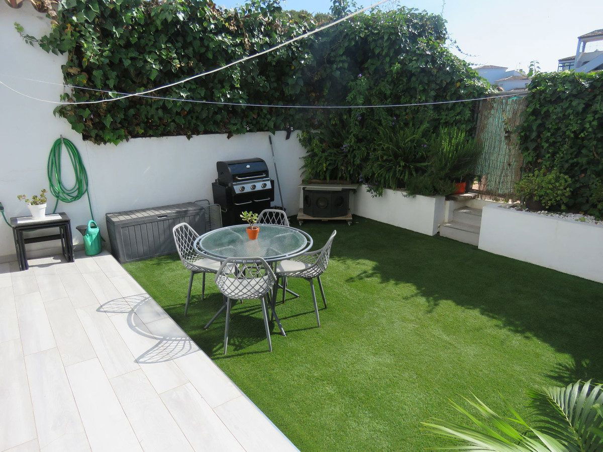 This well maintained ground floor garden apartment has so much to offer. It has an amazing outside space. A covered seating area and plenty of space for sunbathing and the BBQ. There is direct access to the community garden with pool. Inside we have two good size bedrooms and two bathrooms of which one ensuite. The semi open kitchen comes with all appliances including a wine fridge. There is also a large utility room. The property comes with underground parking and large storage. The small urbanization is extremely well maintained and has a large swimming pool area. Last put definitely is the location. This apartment has everything on its door step. Including the beach, Lidl, MacDonalds and many more shops, bars, and restaurants. All within a 5 minutes walk. This apartment sounds to good to be true? Well in this case it is true. This will not be around for long.