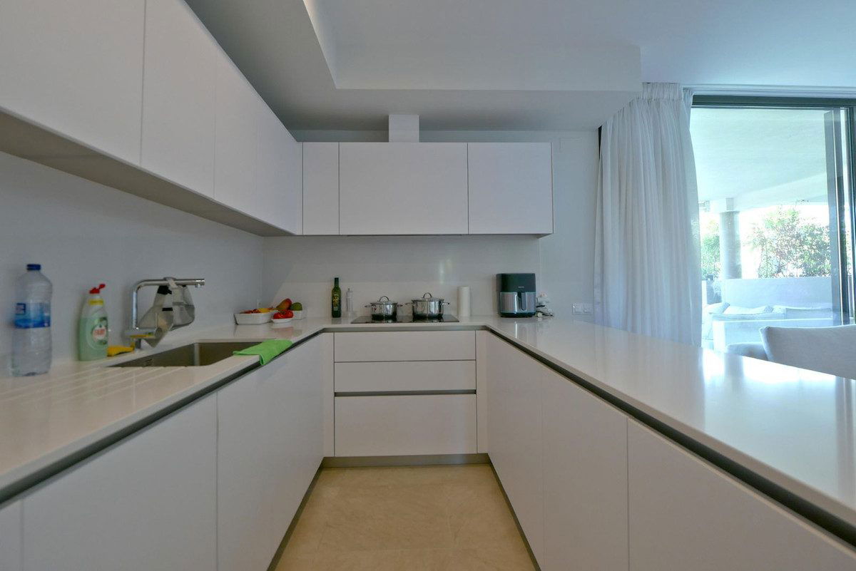 OFFER MADE – DECEMBER 2025 – ASK FOR INFO / UPDATE! An amazing opportunity to acquire a property in East Marbella´s most iconic complex. This luxury modern apartment is an elevated ground floor property offering the benefit of a large terrace and closed garden while also maintaining privacy with a very large outdoors space allowing one to really enjoy the kind of outdoor living that Andalucia allows. The apartment itself has a modern open plan kitchen, floor to ceiling windows that can open up into the walls allowing the terrace and living area to be as one. Located by Cabopino Golf in Marbella and walking distance to the club house this is one of Marbella´s top locations. The property is also just a couple of minutes drive to the beaches and port of Cabopino. We strongly recommend a viewing. Included in the price is one storeroom and one private parking space with the option to purchase an extra parking if needed.