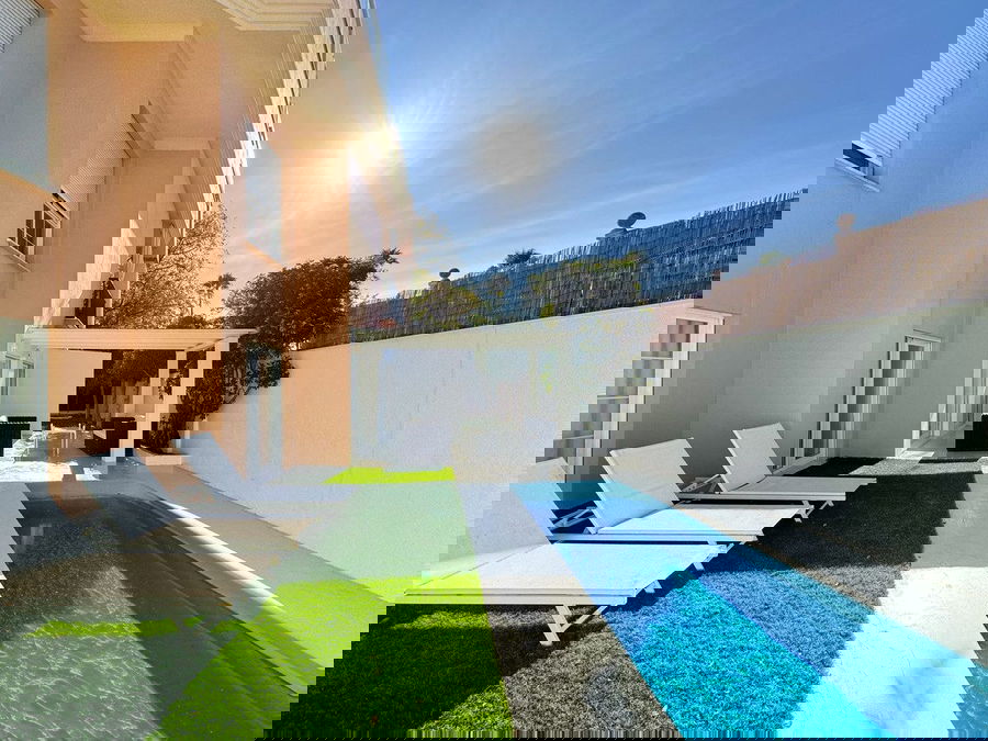 Outside, you'll find a 150 m² private garden, the perfect place to enjoy tranquility outdoors. The apartment also features a terrace with a solarium and a private pool, where you can relax and enjoy unique moments in complete privacy.