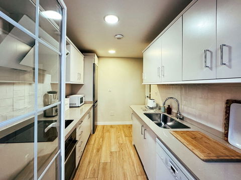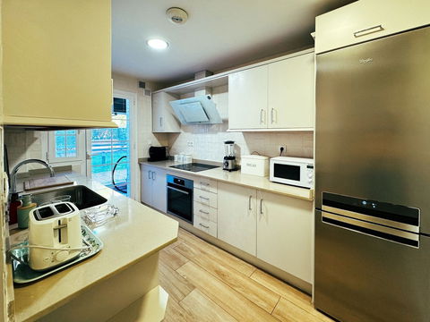 A fully equipped kitchen with high-end appliances and ample storage space.