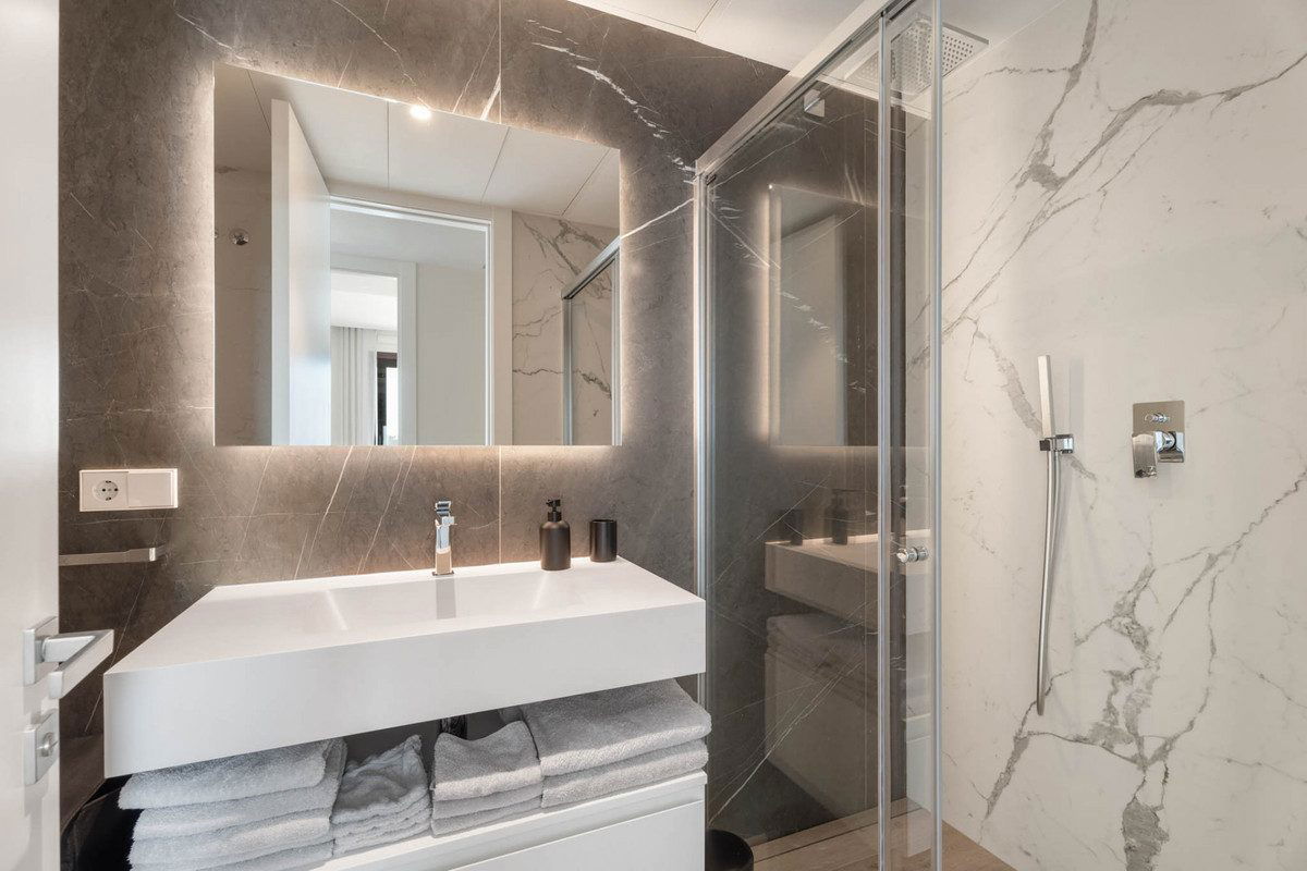 This modern two-bedroom, two-bathroom apartment is located in Los Olivos, within the newly built gated community of Real de la Quinta, Benahavís. Designed to blend contemporary architecture with the beauty of its natural surroundings, the property offers comfort, functionality, and a refined sense of style.