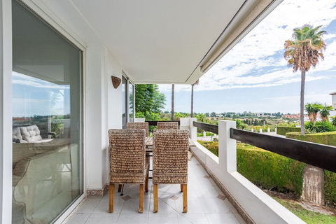 Bright and spacious apartment located in the sought-after Las Jacarandas complex in Bel Air, Estepona. Situated on the first floor, this corner unit enjoys an abundance of natural light and offers tranquil green views with glimpses of the mountains and distant sea views.