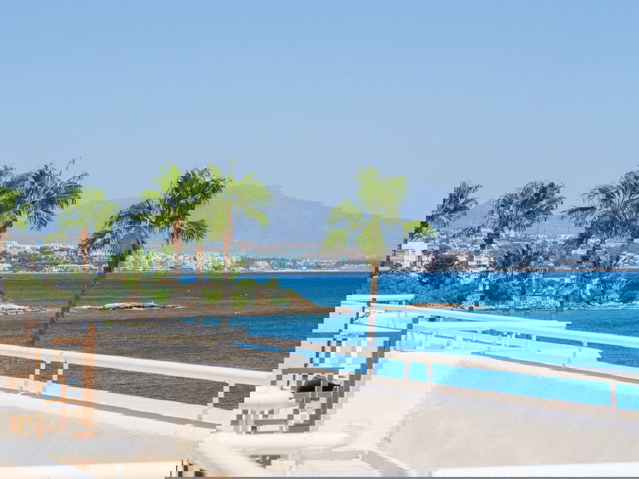 The standout feature of this property is the expansive terrace with incredible first-line beach views. This outdoor space is perfect for dining al fresco, sunbathing, or simply relaxing while enjoying the sights and sounds of the sea just steps away.
