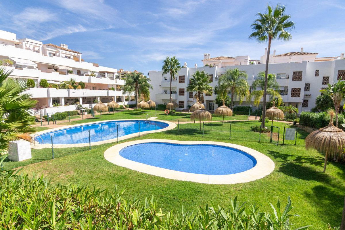 Charming first-floor apartment located in a gated and beautifully maintained urbanization, just five minutes by car from the beach and several golf courses, and ten minutes from both Estepona town and Puerto Banús. The complex stands out for its high-quality construction and well-kept tropical gardens, and offers a large communal swimming pool, a security system with CCTV and controlled access. The property includes a private underground parking space and a good-sized storage room.