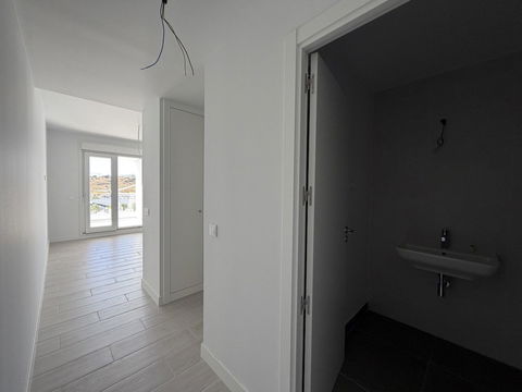 The apartment features three generously sized bedrooms, including one with an en-suite bathroom, complemented by an additional bathroom and two toilets. The living spaces are thoughtfully designed, comprising a bright and airy living room, a dining area, and a fully fitted, equipped kitchen with a utility room. High-quality finishes and modern conveniences such as air conditioning, central heating, and a ceiling cooling system ensure year-round comfort. The property also benefits from advanced aerothermic technology and solar panels, reflecting a commitment to energy efficiency.