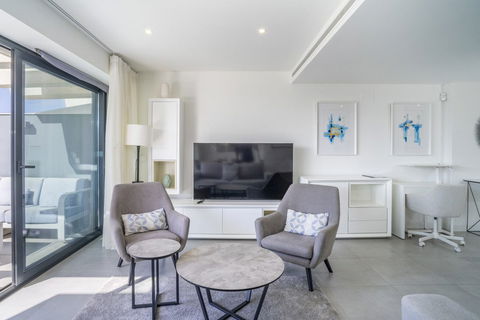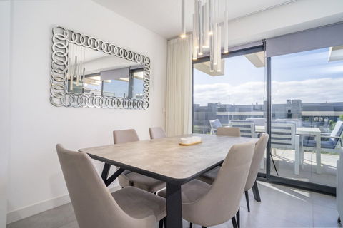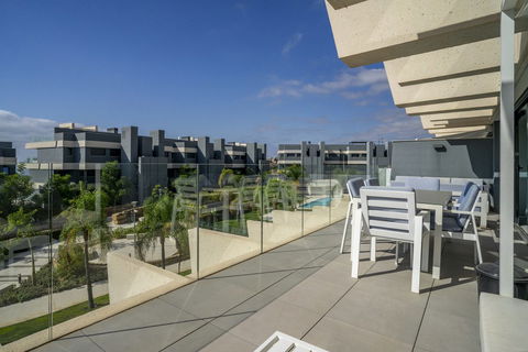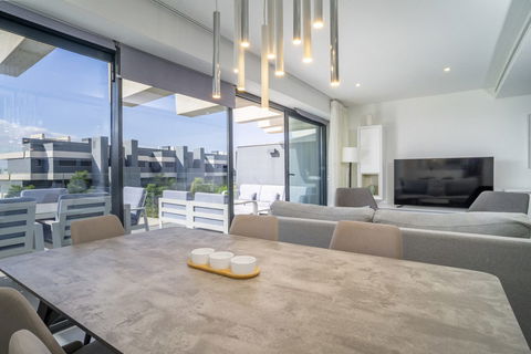 The apartment features an open-plan layout with a bright living and dining area, a fully equipped contemporary kitchen, and direct access to a generous private terrace – the ideal spot to enjoy the sunshine and coastal breezes. The three well-proportioned bedrooms include a luxurious master suite, designed for relaxation and convenience. Fully furnished including outdoor furniture. Proven rental track record.