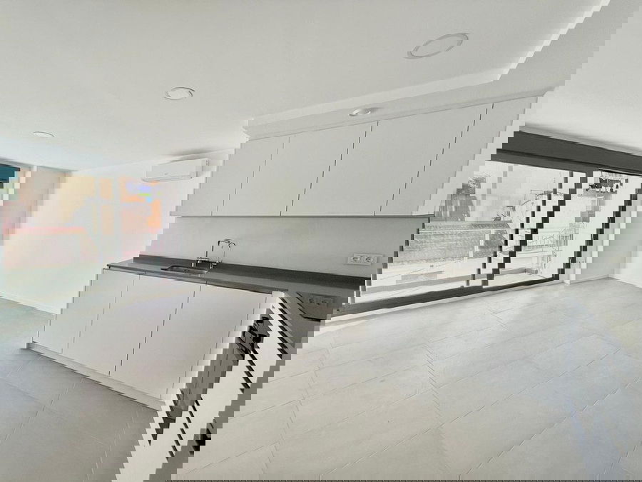 Brand-New Apartment (2025) in the Heart of Fonjerola – With Upgraded Features This outstanding brand-new apartment, completed in 2025, is located in the very center of Fonjerola, right next to Constitution Square. Its location is exceptional: less than a five-minute walk to the beach and close to the Fonjerola Train Association, with all amenities, shops, and services within easy reach. Situated on the second floor, the property features a modern and highly functional layout. It offers two bedrooms and two full bathrooms, both with walk-in showers, one of them en suite in the master bedroom. Both bedrooms include built-in wardrobes and have access to a small, narrow private terrace, enjoying pleasant afternoon sun. The bright open-plan living area seamlessly connects the living room and the kitchen, creating a spacious and contemporary atmosphere. The fully equipped kitchen includes dishwasher, washing machine, oven, fridge, microwave, and a full range of appliances. Additional upgrade features enhance comfort and quality, such as a water filtration system, an upgraded designer kitchen faucet, and an extra-large hot water tank, ensuring excellent water pressure and hot water availability at all times. The apartment also benefits from a main terrace with morning sun, ideal for outdoor breakfasts and relaxation. This terrace includes a laundry area with the hot water tank and solar panels for domestic hot water, improving energy efficiency and sustainability. The property is sold with a developer's warranty, offering security and peace of mind. A unique opportunity to enjoy a new, upgraded, energy-efficient apartment in a prime central location—perfect as a permanent residence, holiday home, or investment property.