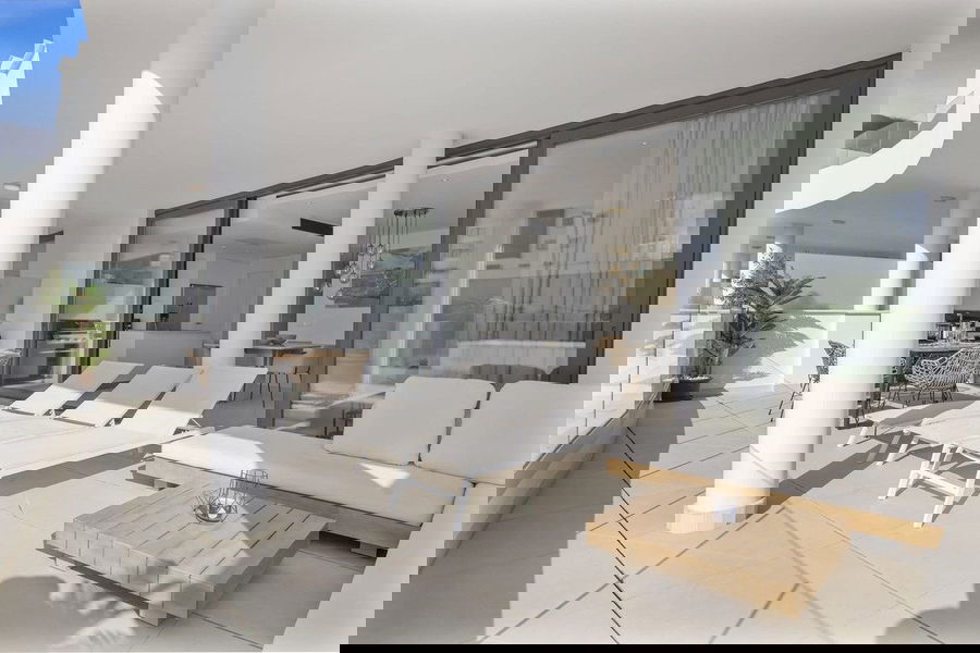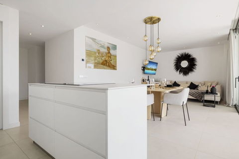 This fully furnished property has been designed with contemporary living in mind, featuring an open-plan layout that seamlessly connects the kitchen, dining, and living areas, leading onto a spacious west-facing terrace that enjoys abundant natural light and spectacular sunset views.